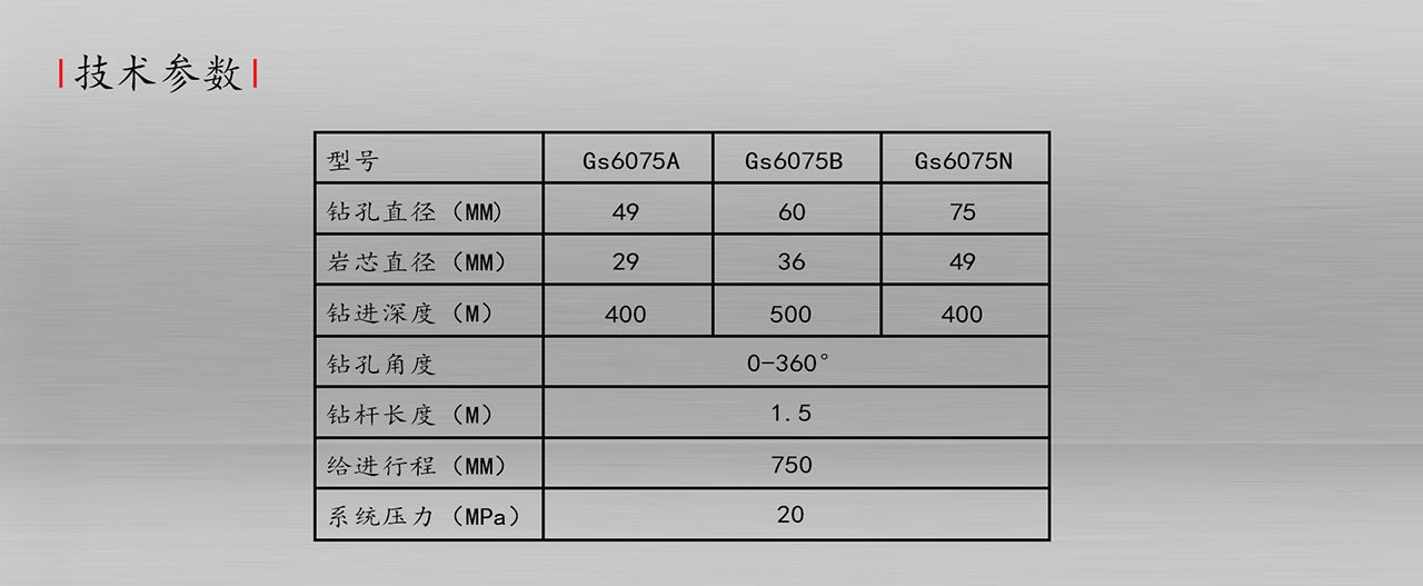 Gs-6075型钻机 技术参数